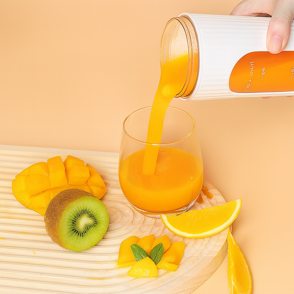 Unser kompakter Juicer passt in jede Tasche, ist leicht zu bedienen